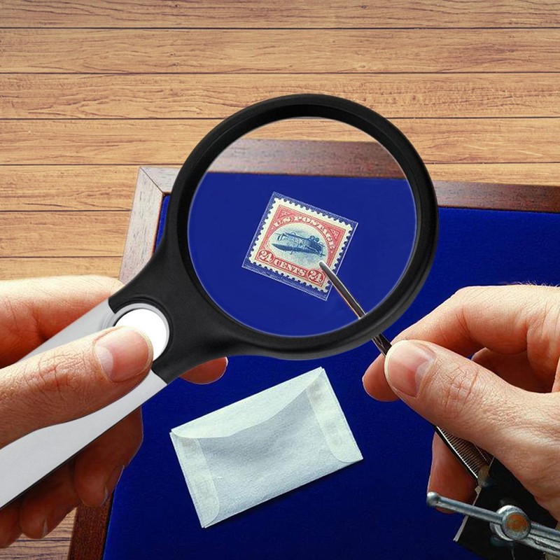 - Comfortable ergonomic handle; Magnification: large glass: 3X, small magnifier: 45X