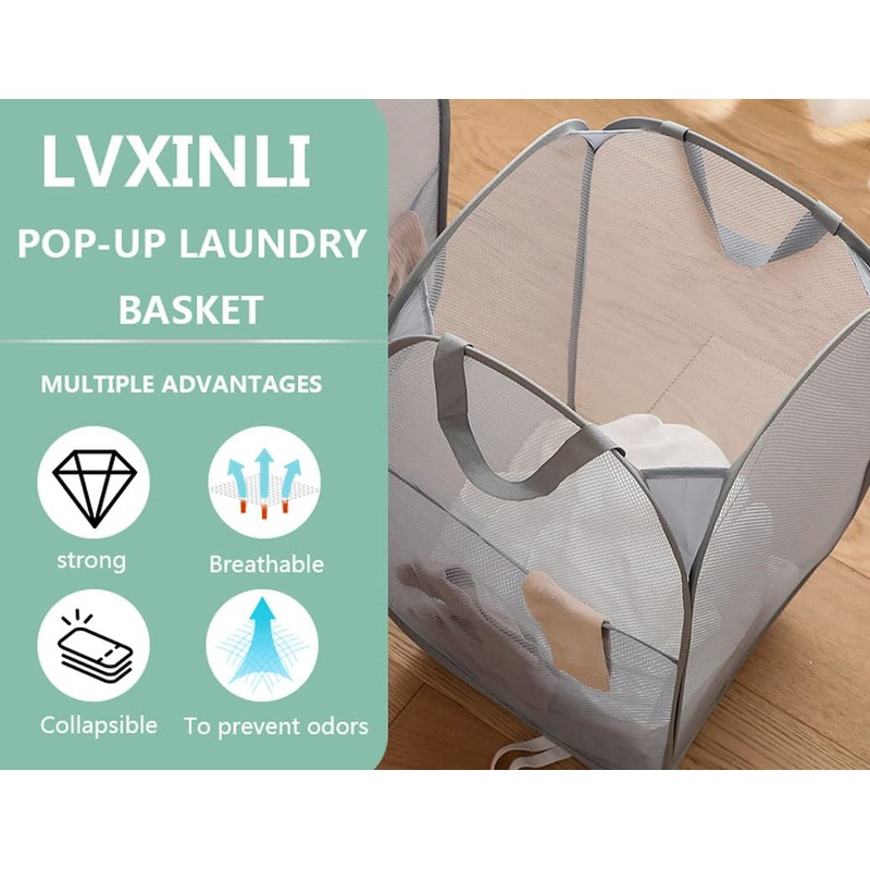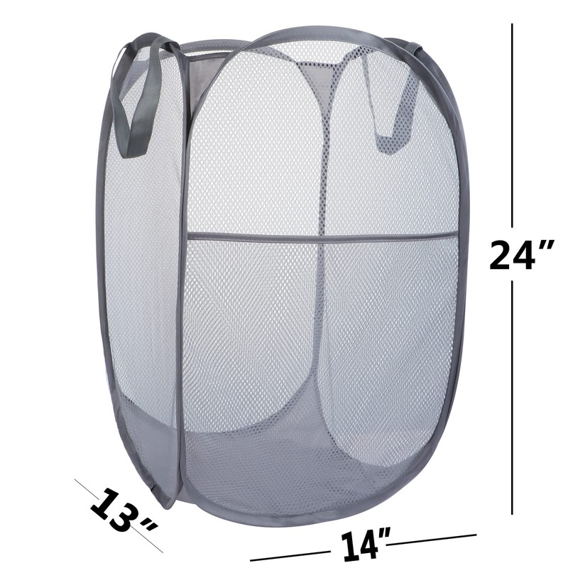 2 Pack Mesh Laundry Basket,Foldable Popup Laundry Hamper with Durable Handle,Easy to Open and Fold for Dorm, Laundry Room, Bedroom, RV(Gray+ Gray)…