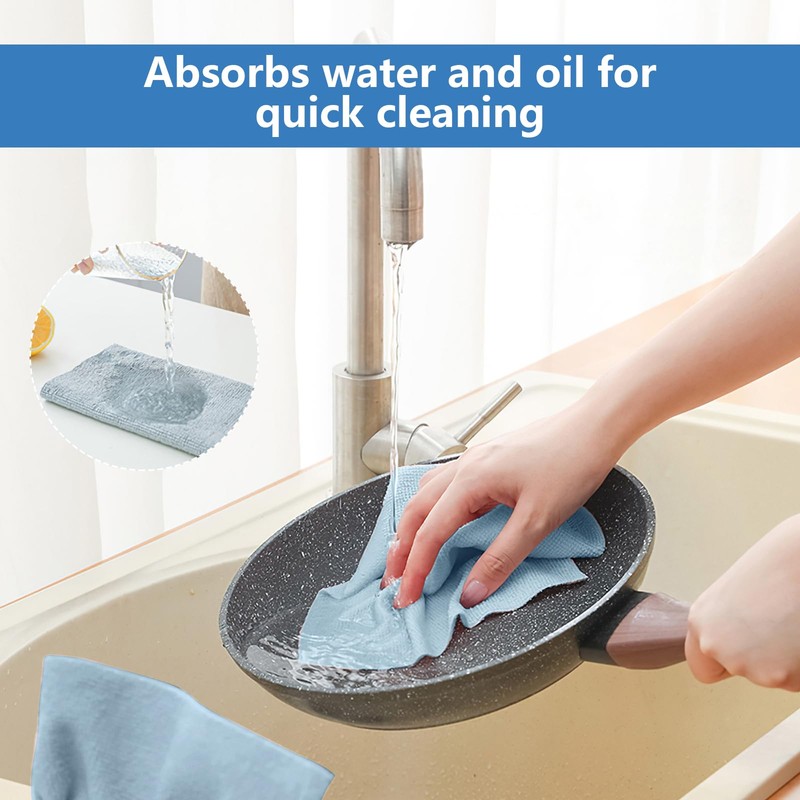 Versatile Kitchen Cleaning: These high-quality microfiber towels are perfect for kitchen cleaning tasks, such as effortlessly removing grease and particles from microwaves, dishes, pots, and pans. Not only that, but you'll find that they also make great dusters, easily removing fingerprints from silverware and glassware.
