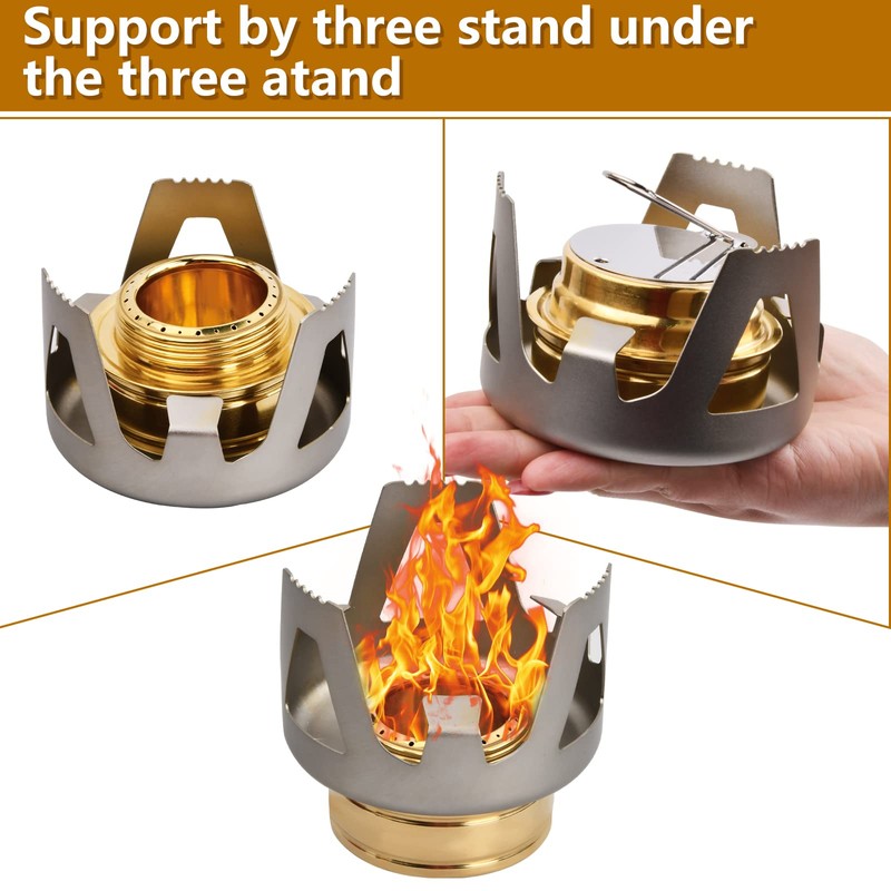 - 【Reliable and Easy to Use】: Our alcohol stove, also known as an alcohol burner, is crafted from durable brass and stainless steel materials that are both solid and lightweight. The tear and wear-resistant construction ensures that it is not easily broken or deformed, and it can serve you for a long time. You can confidently purchase and use it for your camping or backpacking trip.