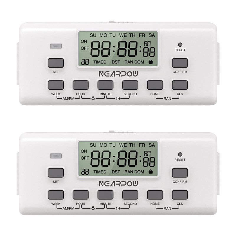 [2 Pack] NEARPOW Digital Timer for Electrical Outlets, Outlet Timer for Lights with Dual Outlets,10 On/Off Programs, 24-Hour and 7-Day Programmable Electric Plug Timer,3 Prong, 15A/1800W