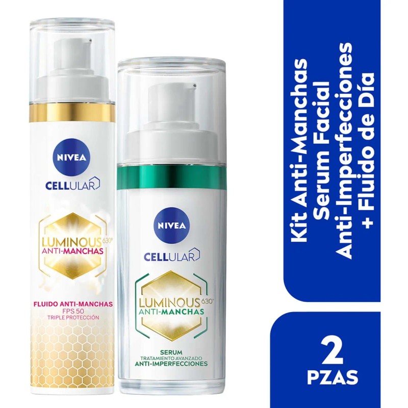 El 2 Pack Nivea Luminous Sérum + Fluido Día ayuda a reducir manchas, unificar el tono y proteger tu piel con FPS, para un rostro radiante y saludable. 🌟🛡️