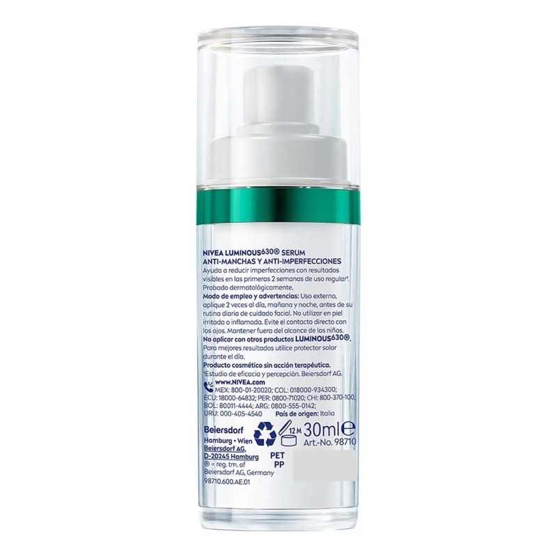 El 2 Pack Nivea Luminous Sérum Anti Imperfecciones + Fluido Día es la combinación perfecta para combatir manchas y mejorar la textura de tu piel diariamente. El sérum, con tecnología avanzada Luminous 630®, reduce visiblemente las manchas y ayuda a prevenir su reaparición, mientras que el fluido día con FPS protege tu piel del daño solar y del envejecimiento prematuro. 🌿☀️