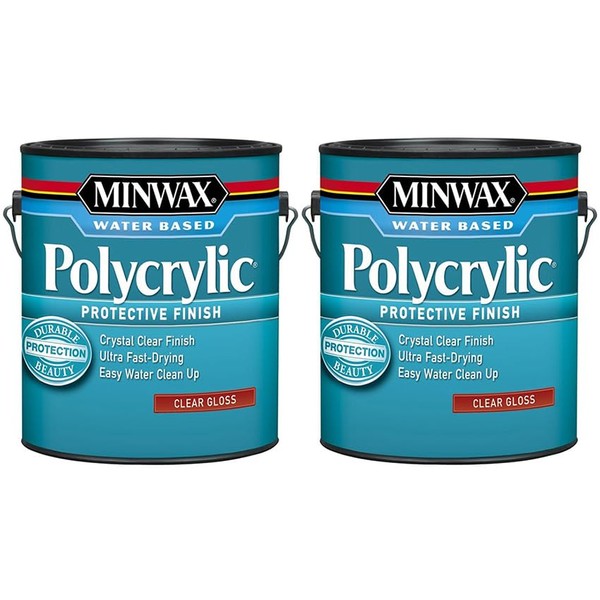 2 Pack of 1 gal Minwax 15555 Clear Polycrylic Water-Based Protective Finish Gloss