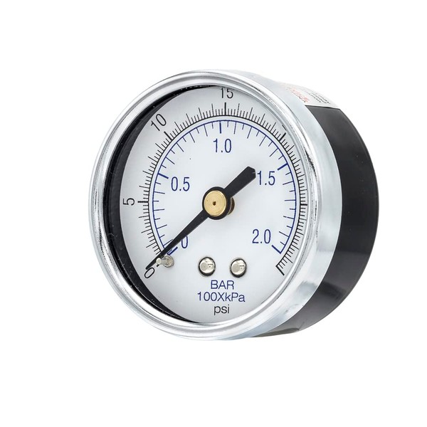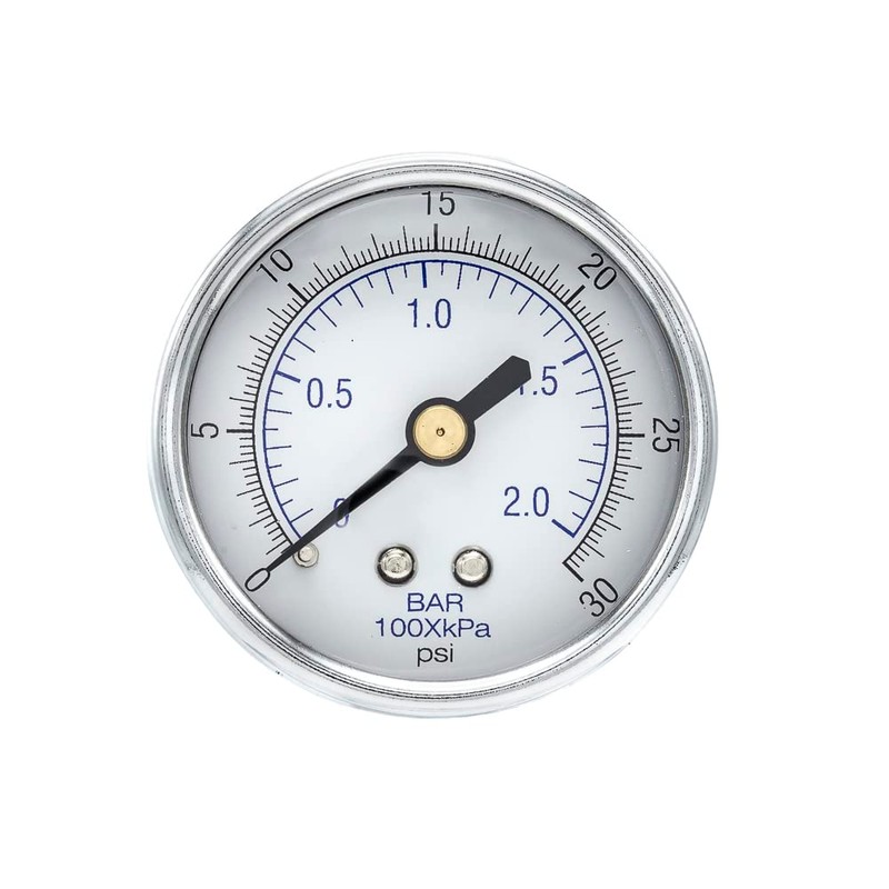 - 2 PACK OF CENTER BACK MOUNT DRY PRESSURE GAUGE, FACE/DIAL SIZE 2", 1/8" MALE NPT CONNECTION, 0-30 PSI RANGE