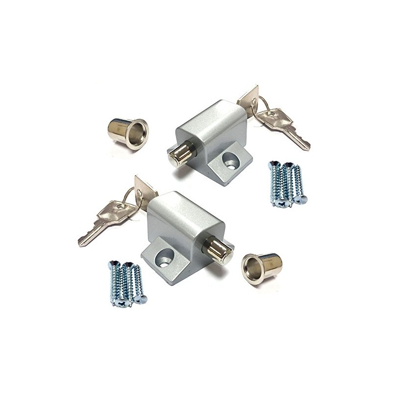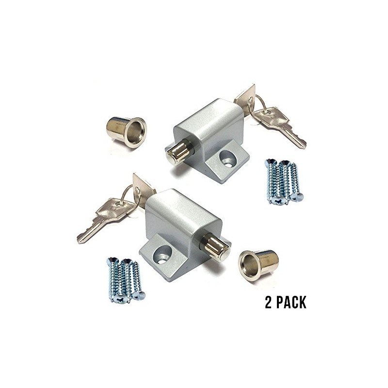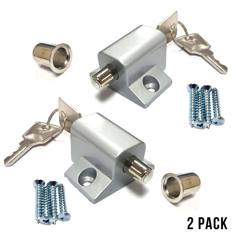 2 Pack of Window and Patio Door Sliding Locks with Keys Silver