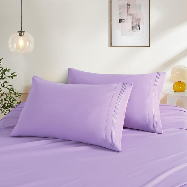 2 Pack Pillow Cases Standard Size, Light Purple Pillowcases Microfiber Hotel Pillow Case Soft Breathable and Non Shrinking Envelope Pillow Covers 20"X 26"
