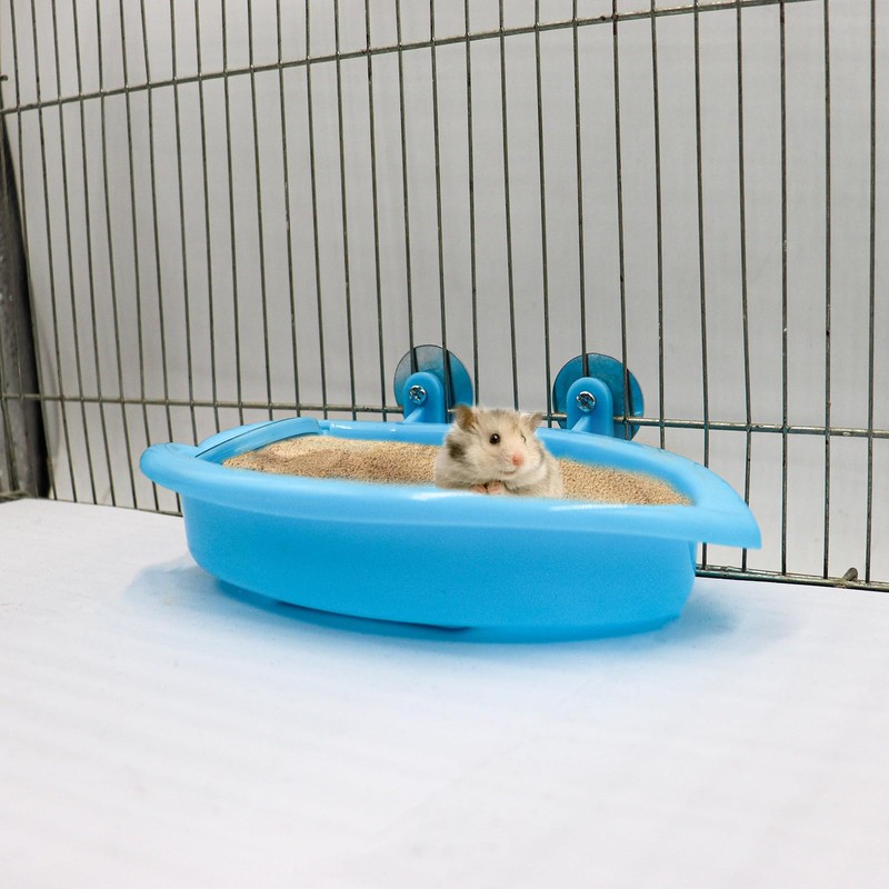 2-Pack Plastic Small Animal Bathtub & Food Bowl – Blue Sand Bath Container with Mirrors & Cage Mount Kit for Hamsters, Rats & Other Small Pets