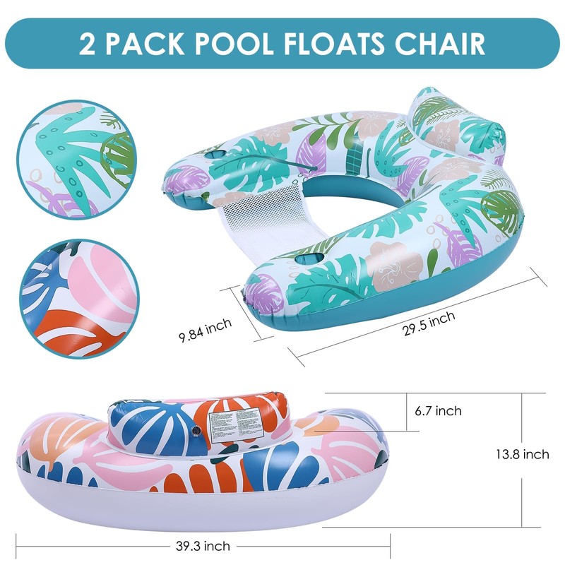 GG ZHONG QUAN 2 Pack Pool Float Adults, Inflatable Pool Float Chair with Cup Holder Lounge Hammock Pool Toys for Swimming Pool Beach Ocean River Outdoor Party Floaties