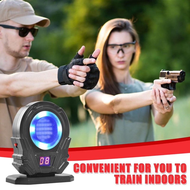 - Easy to Use: Perfect for shooters of all skill levels, this electronic gun target allows you to practice your shooting skills indoors, safely and conveniently—no live ammunition required. Simply place it on any flat surface for versatile training.