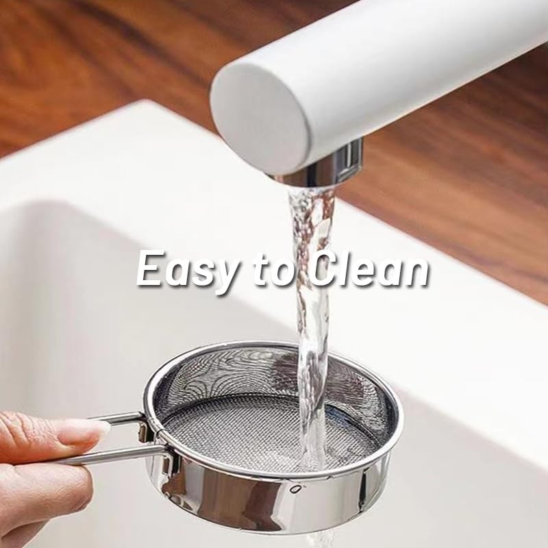 • 【Heat-Resistant Handle】 This mini sifter is designed with a heat-resistant handle, keeping you safe from potential burns while filtering oils, soups, and other hot liquids. Its mini size, with a sifter diameter of 2.5 inches and a height of 0.91 inches, is perfect for quick and efficient straining. The handle length of 1.97 inches provides additional control during use.