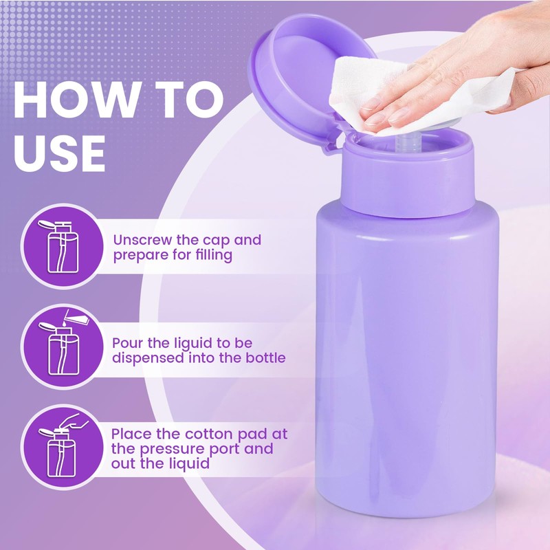 2 Pack Purple Push Down Pump Dispenser - Nail Polish Remover Pump Empty Refillable Bottle Containers for Makeup Remover Micellar Water Facial Toner, 200ml 6.7oz