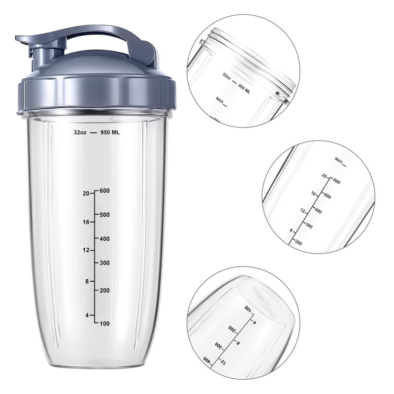 - Packing Includes: 2x 32oz Huge Cups, 2x Flip-Top To-Go Lid, 2x Rubber Gasket. The Smoothie Blender Cup Set with Replacement Lid is compatible with a NutriBullet replacement part and is not an original aftermarket part. Perfect Replacement Accessories.
