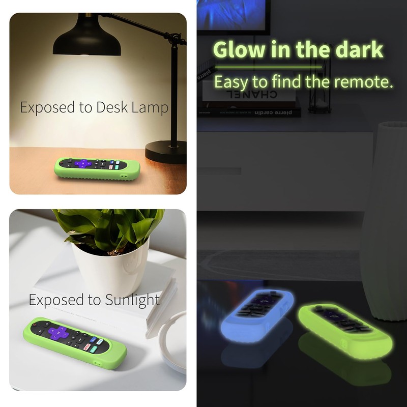 - Easy to find: Bright and interesting colors make the roku remote easier to find. You can expose the glowing green, glowing blue to light for a while to make them glow in the dark, so that you and your family can find the remote more easily.