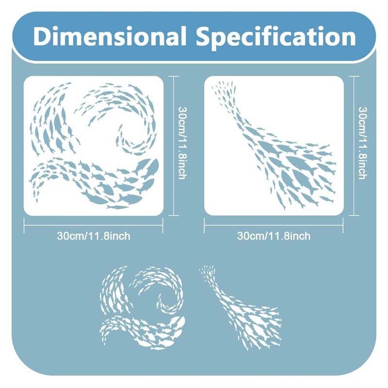 - Portable Size: Including 2pcs fish craft stencils measuring 11.8" x 11.8", convenient for daily use, can be used with sponge brushes, painting brushes, acrylic paints or spray to create an unique artwork