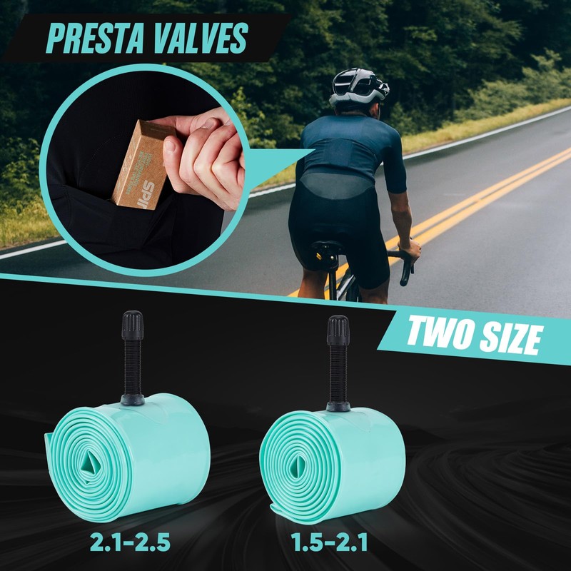 - 【TPU Material】: TPU inner tubes are lighter and stronger than butyl rubber and have higher air tightness than latex. With a weight reduction of 70% compared to ordinary butyl rubber inner tube, the use of this TPU ultra-light inner tube can significantly reduce the rotational mass of the vehicle riding, making the ride more flexible.