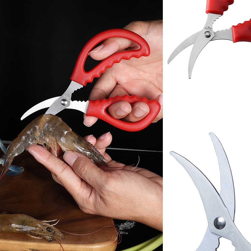 - Durable construction: our kitchen seafood scissors are made of quality stainless steel and PP material, the blade is pointed and wear-resistant, with a serrated designed smooth handle, which can be grasped firmly to avoid slipping during cutting.