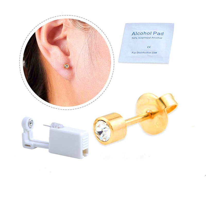 - Package Content: 2 pieces ear piercing guns, 2 pieces ear studs and 2 pieces alcohol pads. Each unit combines a ear piercing gun with a built-in ear stud