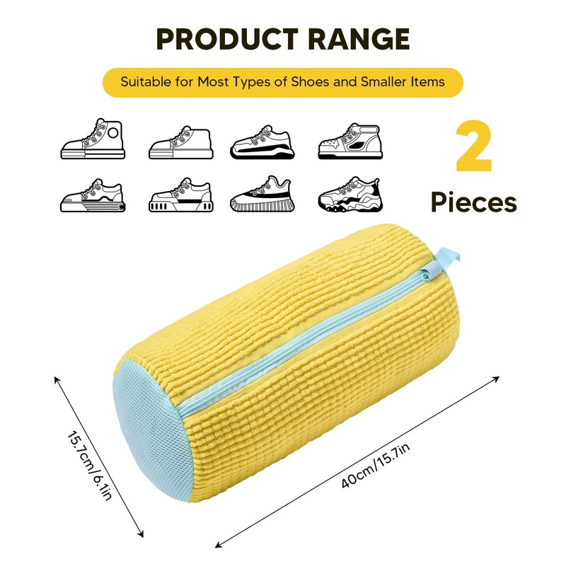- Gentle Yet Effective Protection : The soft inner lining shields delicate fabrics (like knit uppers) from harsh agitation. Use this shoe washing bag for machine-safe cleaning of ballet flats, flip-flops, or running shoes—no more hand scrubbing!