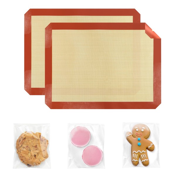 2-Pack Silicone Non-Stick Food Safe Baking Mat Set with Cookie Bags, 15.7x11.8" Baking Mats, Non-Stick, Oven-Safe up to 480°F, with 200 Pcs Self Sealing Cellophane Bags 4.8" x 4" - ZZ02