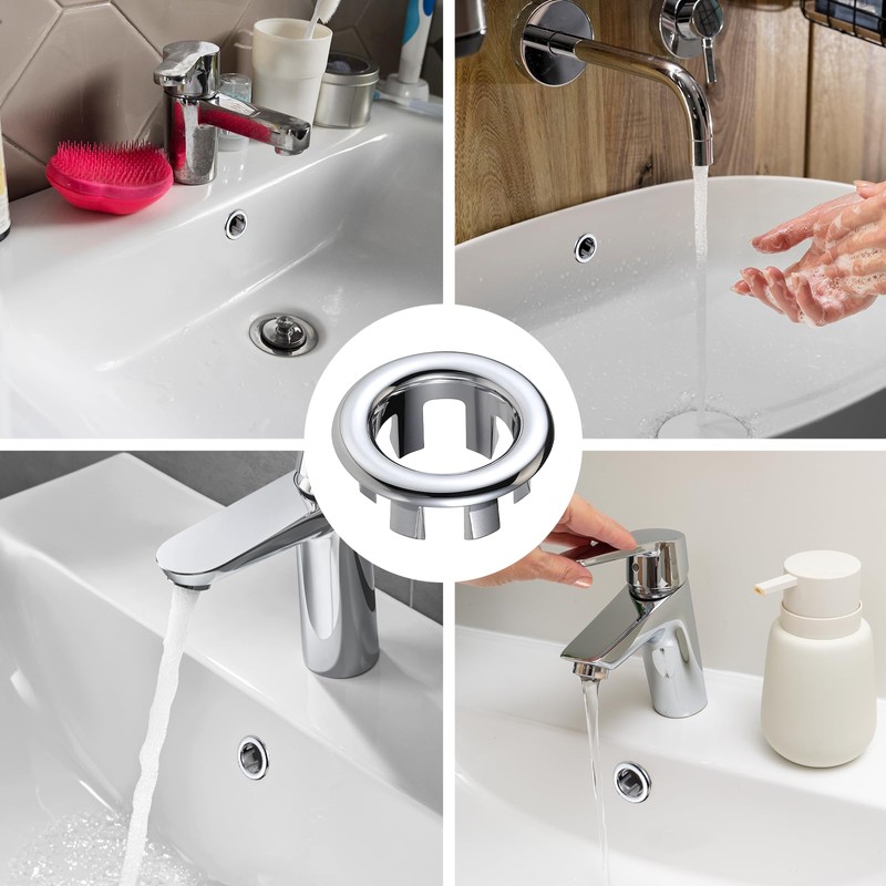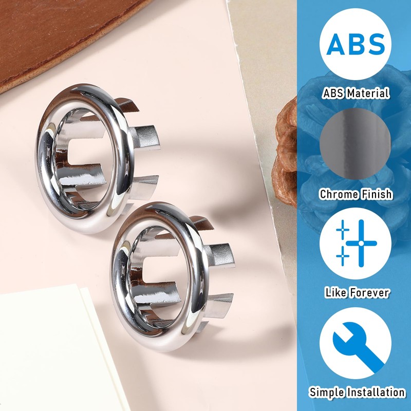 • What You Get: You will receive 2 pcs chrome sink overflow ring. These decorative bathroom sink drain cover feature a six-prong design that allows for easy tool-free installation and press securely into place