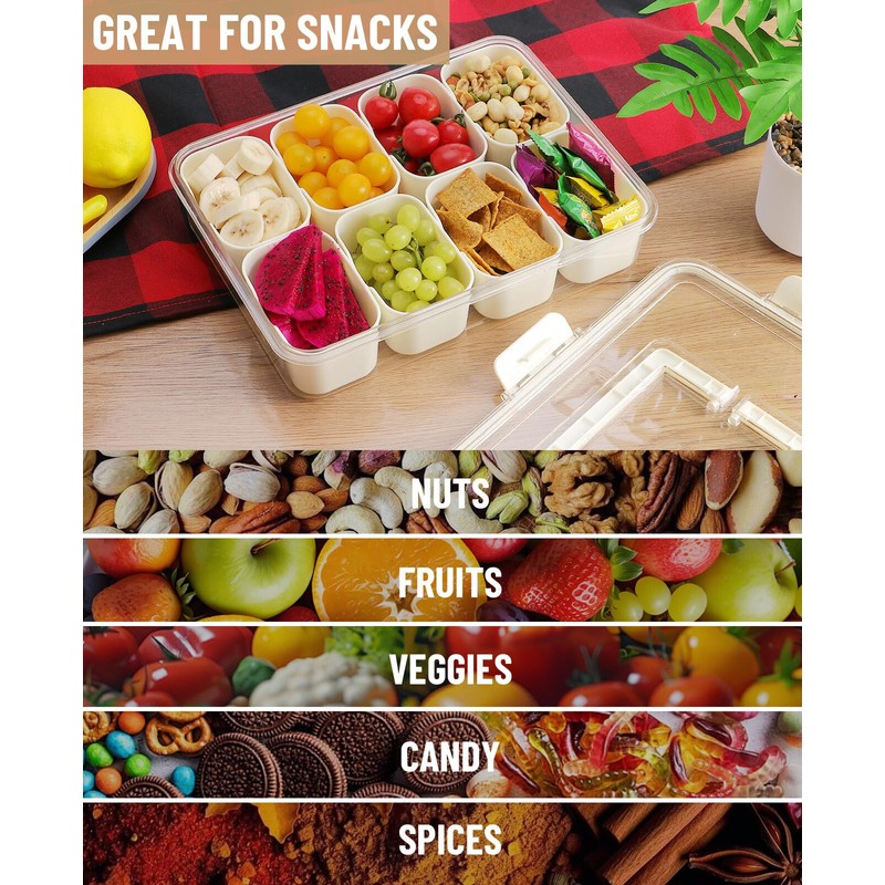- 【Clear and Easy Viewing】With its transparent design, you can easily monitor your stored items at a glance. No more guessing games or rummaging through containers—our clear compartments provide instant visibility for effortless organization. This snack tray with lid is ideal for quick access and easy storage.