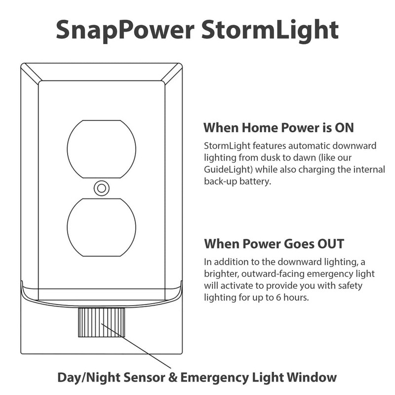 - DUSK-TO-DAWN SENSOR - The StormLight will provide a soft downlight, similar to the GuideLight, while you home is powered normally.