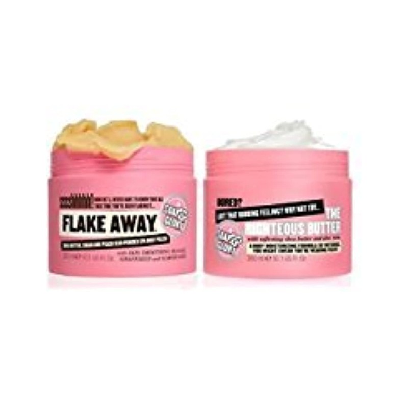 (2 PACK) Soap & Glory Flake Away Body Scrub x 300ml & Soap & Glory Righteous Body Butter x 300ml