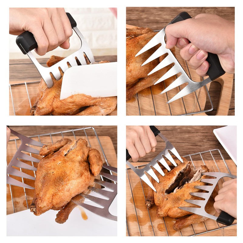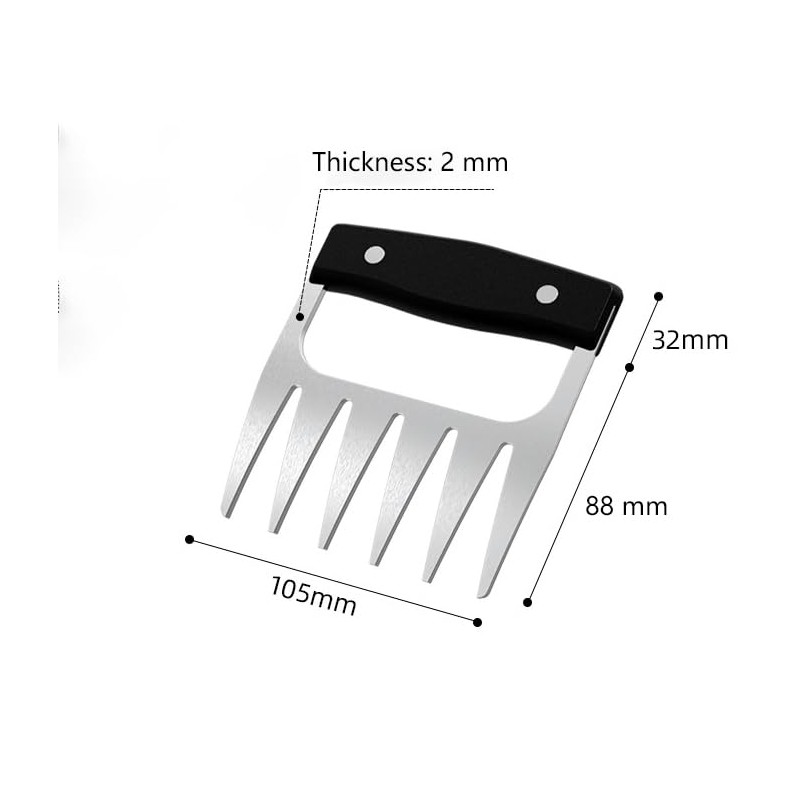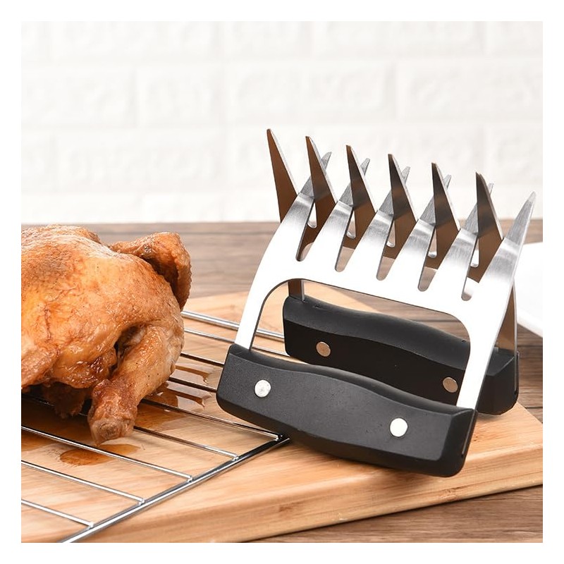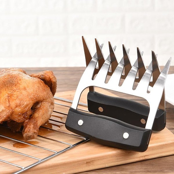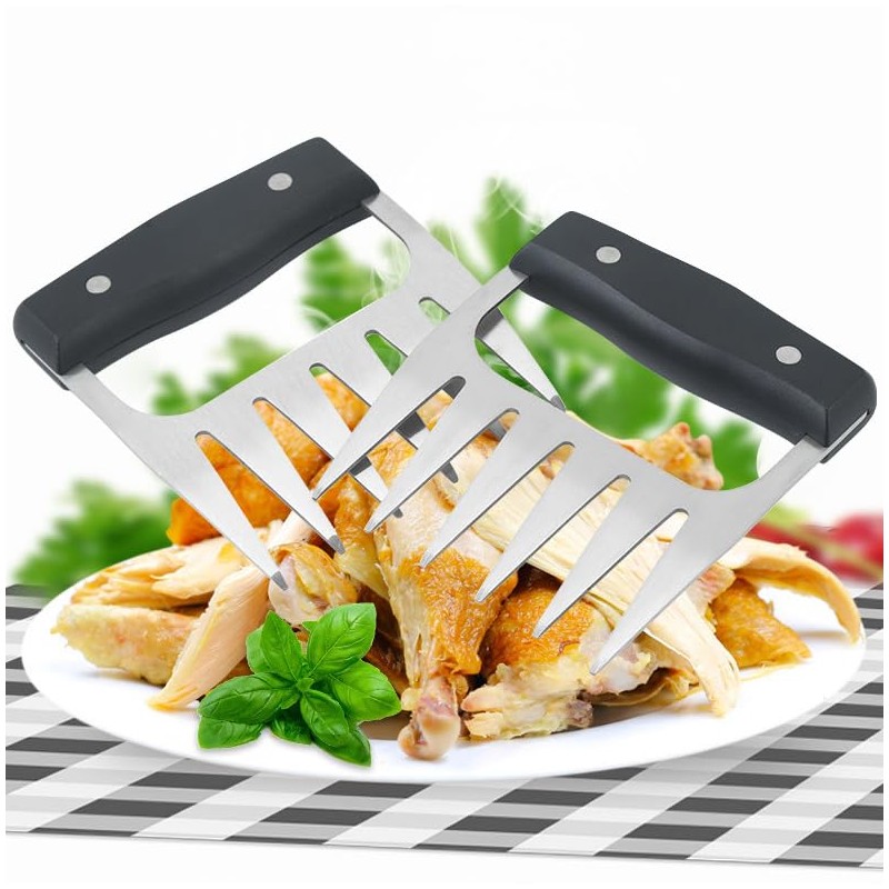 • 【CONFORTABLE GRIP】:Coming with premium food-grade plastic handle, our meat claws are healthy and anti-slip. What’s more, it is comfortable to hold. The plastic handle can effectively protect your hands from burning than metal handle.