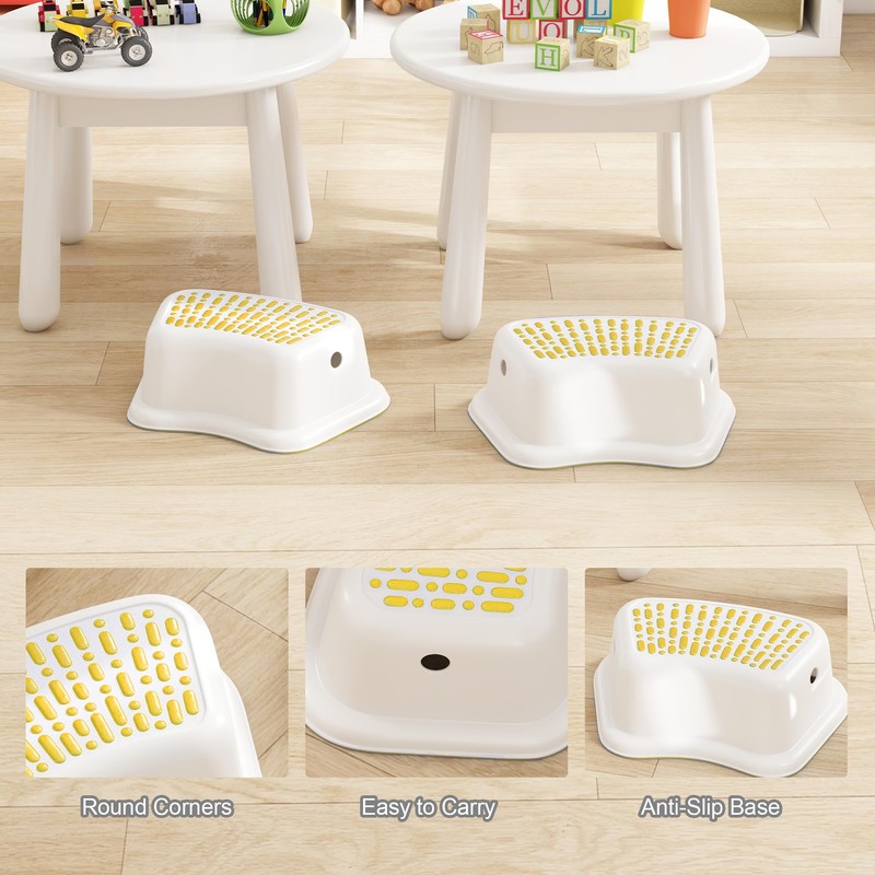 2 Pack Step Stool with Anti-Slip Surface, Curved Stepping Stool for Potty Training Toilet, Bathroom Sink, Kitchen Counter Stool Helper, Yellow-White