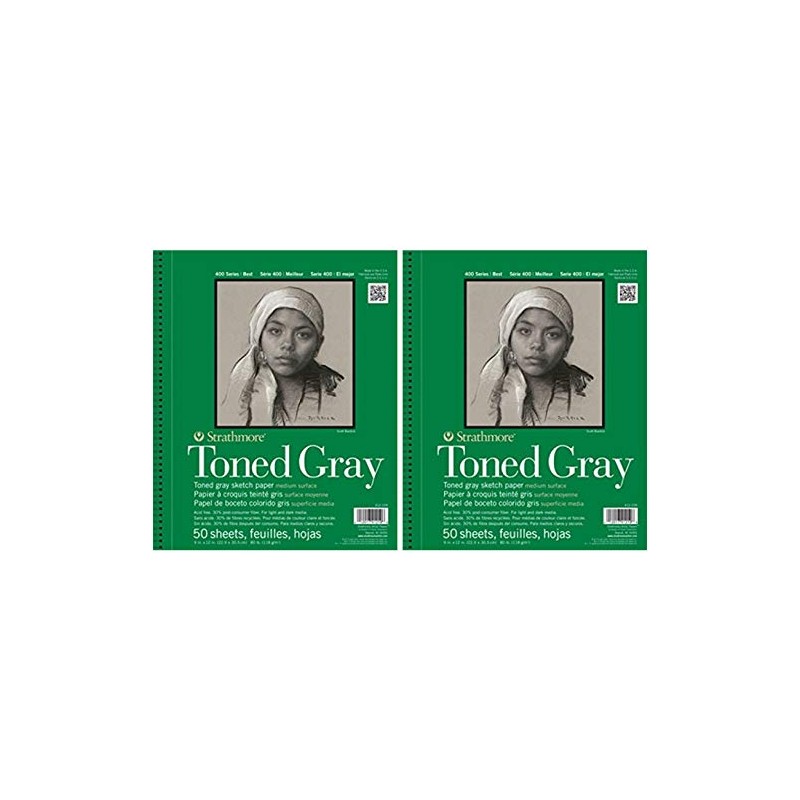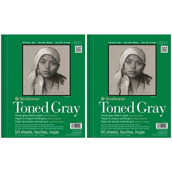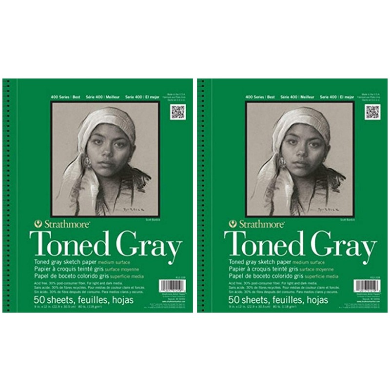 2-Pack - Strathmore 412-109 400 Series Toned Gray Sketch Pad, 9"x12" Wire Bound, 50 Sheets Each