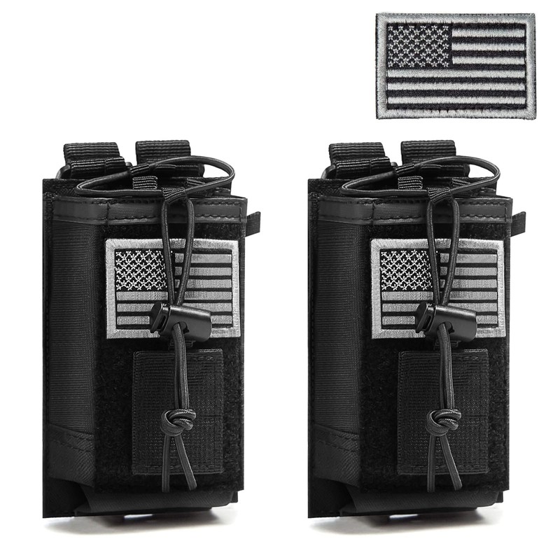 2 Pack Tactical Radio Holder Radio Case Molle Radio Holster Military Heavy Duty Radios Pouch Bag for Two Ways Walkie Talkies Adjustable Storage with 3 Pack Patch