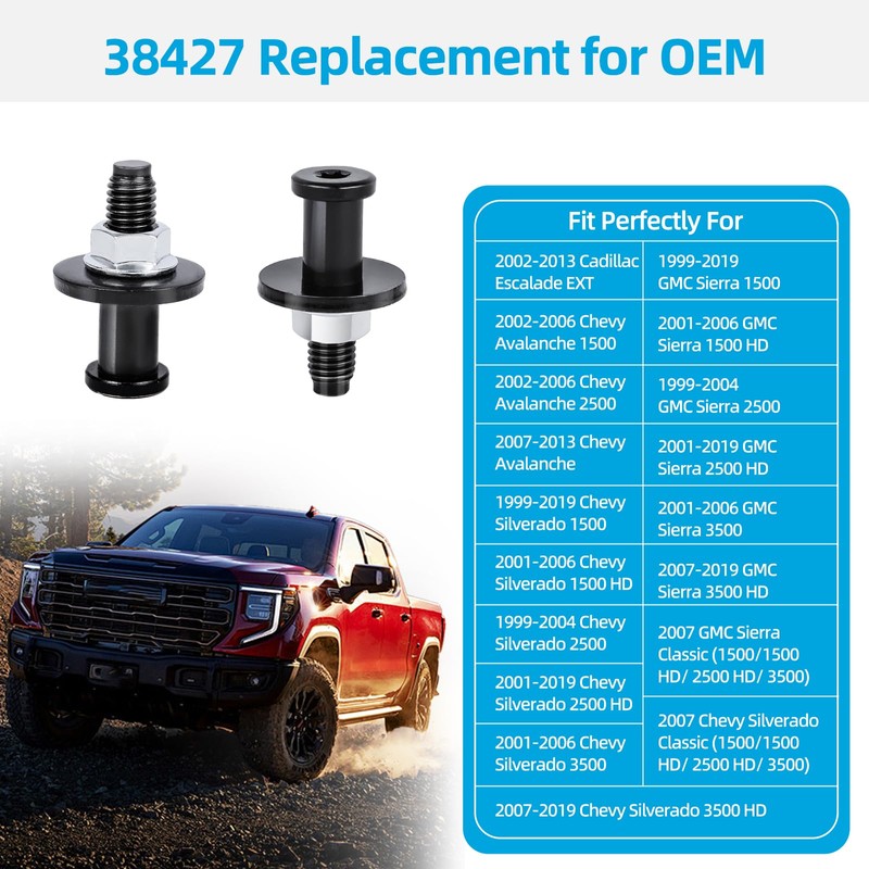 - [Exact Replacements] - Compatible with Chevy Chevrolet Silverado 1999-2013 Sierra 1500/ 1500 HD/ 2500/ 2500 HD/ 3500/ 3500 HD, 2002-2013 Chevy Avalanche, 2002-2013 Cadillac Escalade, GMC Sierra 1999-2019 1500/ 1500 HD/ 2500/ 2500 HD/ 3500/ 3500 HD.