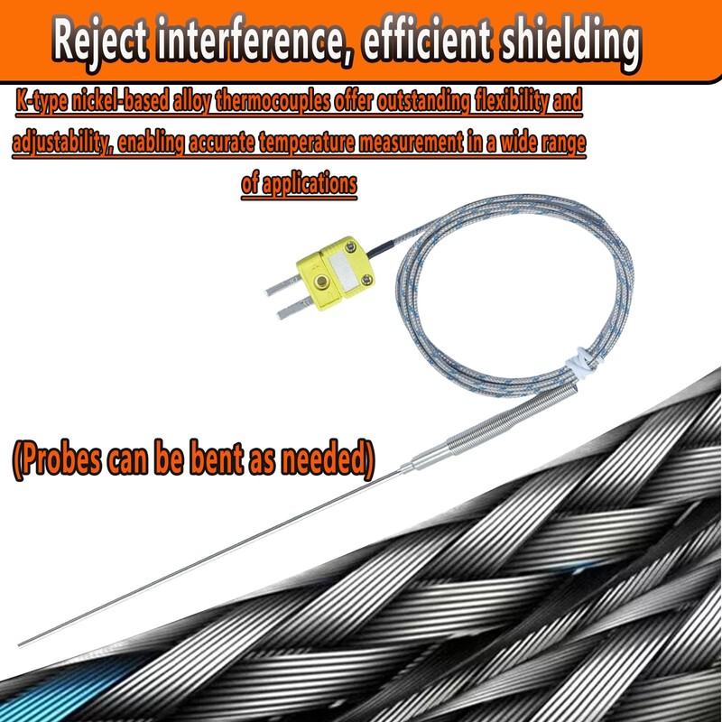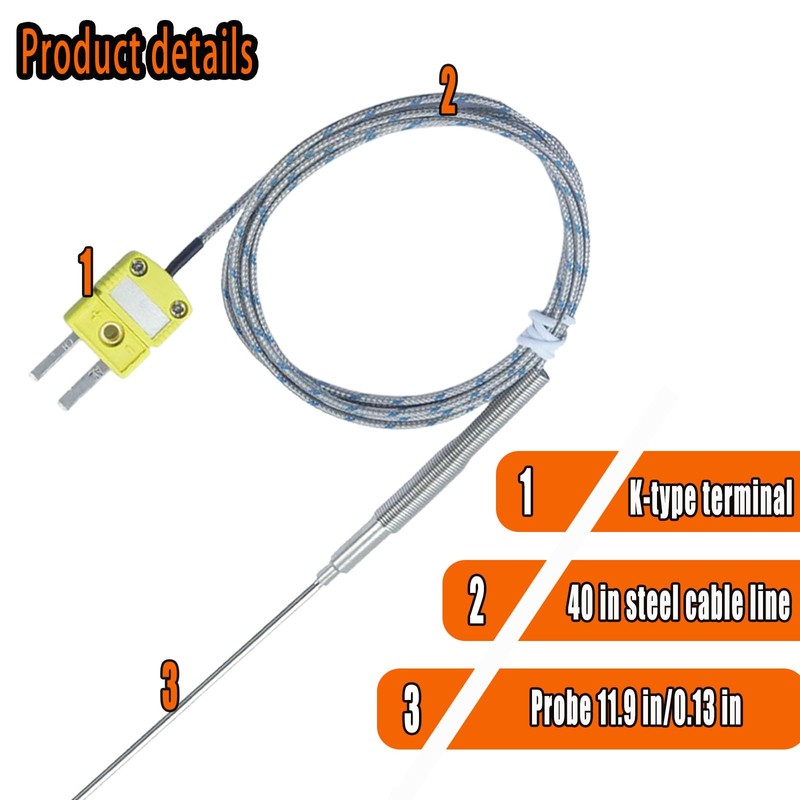 2-Pack TL1918SL K-Type thermocouple Probe Probe 11.9 inches/0.13 inches Cable 40 inches Measurement Range 40°F-1100°F