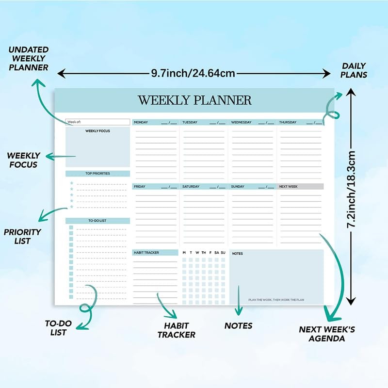 • Stay Efficient – Whether you're setting up reminders or tracking deadlines, weekly planners will keep you organized and on track. Discover the surprising effectiveness of this dual-pack set in helping you stay productive.