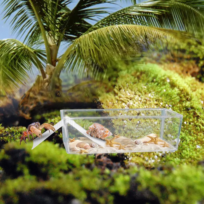 The Transparent Hermit Crab Water Tank comes with a cuttable climbing ramp, providing an interactive and stimulating experience for your hermit crab. This feature allows you to customize the ramp's shape and size, catering to your hermit crab's specific needs and preferences.