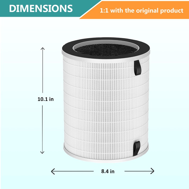 • Our MEGA True HEPA filter uses a 3-stage filtration system to keep your air clean. The outer layer of the cartridge is a fine pre-filter, the middle layer is H13 True HEPA filter, the last, inner layer of the cartridge consists of an activated charcoal filter; Pre-filter designed to trap pet dander, dust, and other big contaminants, the goal is to save the inner HEPA filter for smaller, more demanding particles