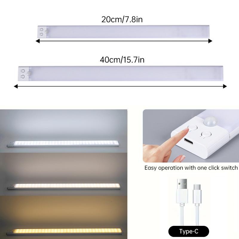 2 Pack Under Cabinet Lights with a Motion Sensor Operated Rechargeable,Stepless Dimmable Closet Lighting for Drawer,Wardrobe,Kitchen:_20cm