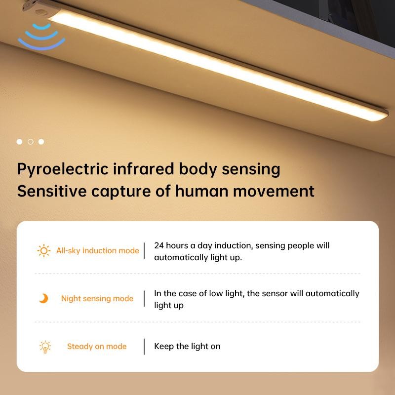 3 Settings On/Off/Motion: These stick-on closet lights have a 3 mode switch which is On-Off-G to set it always ON, Off or Motion Sensor mode. under G mode and dark environment, these under cabinet lights will automatically senses human motion within 10ft/120°range and shuts off automatically after 20 seconds of no movement.