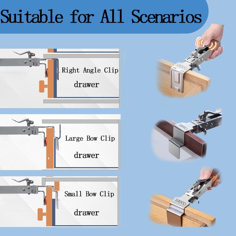 - 【 Save Time and Energy with an Adjustable Drawer Fixing Clamp】 Our adjustable drawer fixing clamp allows for quick adjustments to fit any drawer or cabinet, saving you valuable time and effort. Whether you’re using this tool for a single project or large-scale installations, its ease of use and efficiency will streamline your workflow, making it a must-have for any cabinet jig setup.