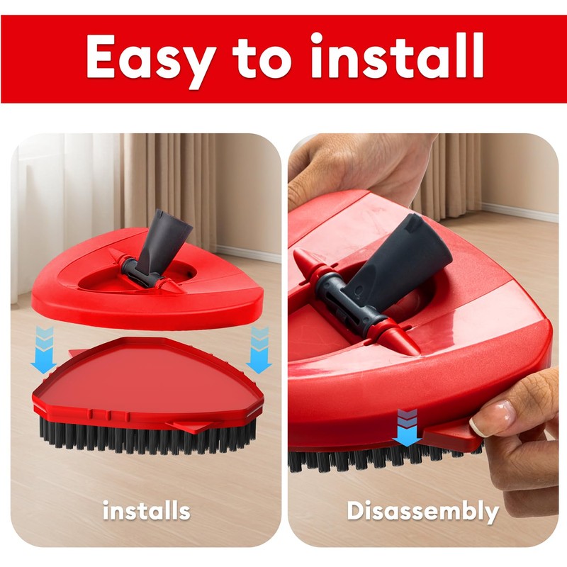 - 【Easy to Attach & Long-Lasting】Quick and secure installation — simply align and press into the mop base until you hear a "click". Includes 2-pack replacement brush heads. Initial installation may feel snug, but becomes easier with repeated use.