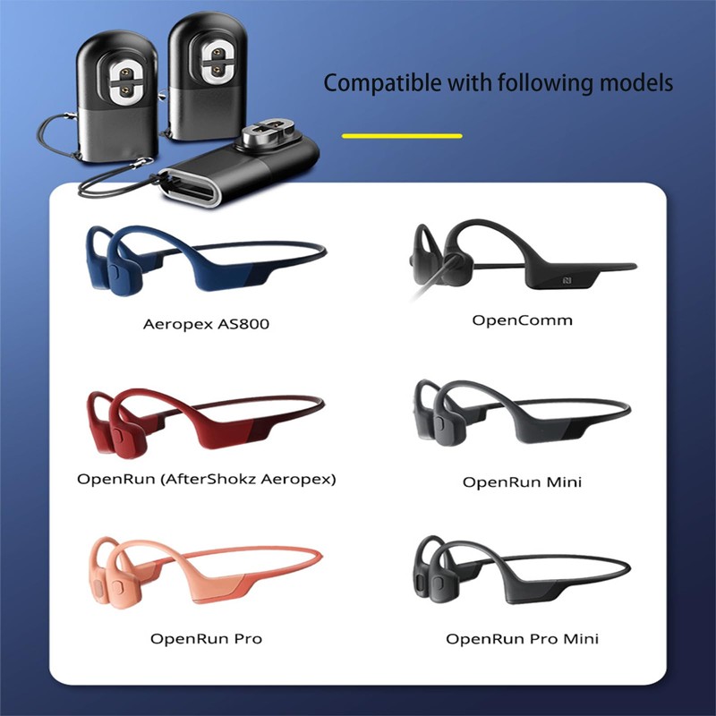 - COMPATIBILITY: 2-piece USB-C female charging adapter; This charging adapter is compatible with Aeropex / Shokz OpenRun, Shokz OpenRun Pro, Shokz OpenRun Mini and Shokz OpenComm. Safe and fast charging with the upgraded magnetic suction cup. Strong adsorption and high stability ensure a faster charging experience.