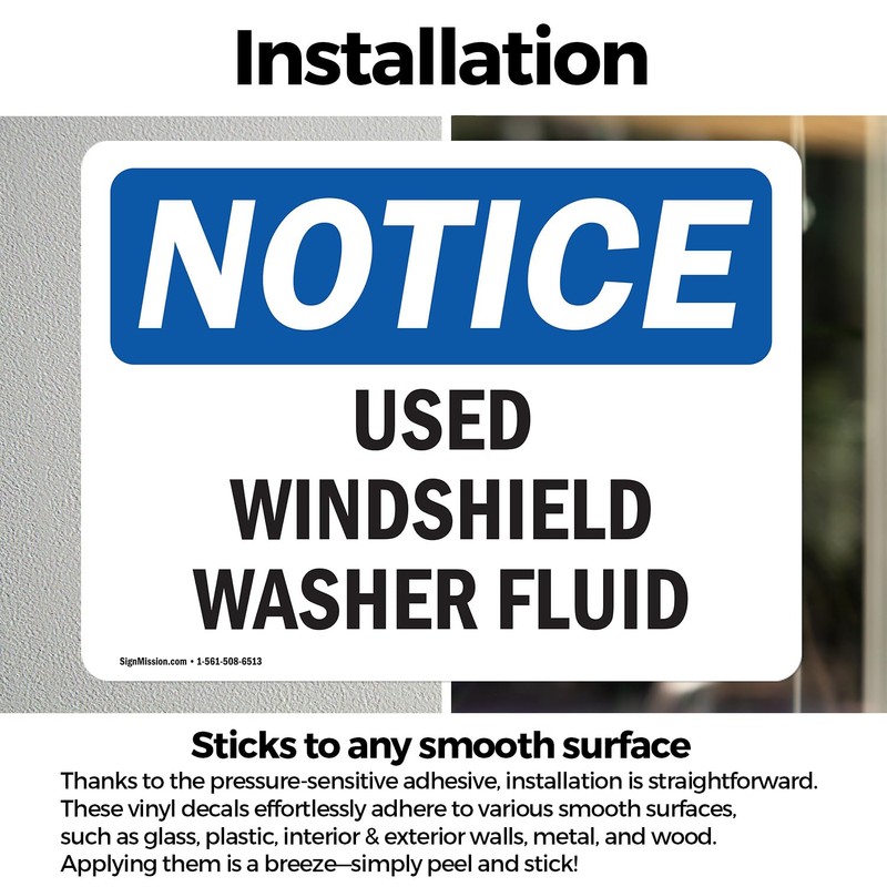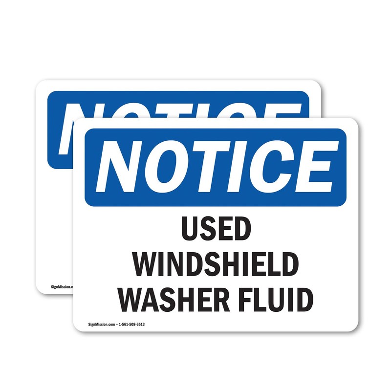 (2 Pack) Used Windshield Washer Fluid OSHA Notice Sign 5 Inch X 3.5 Inch Vinyl Label Decal Sticker Weather Resistant, UV Protected for Workplace, Business, and Construction Site, Made in the USA