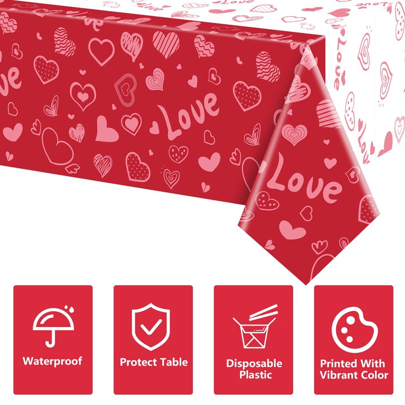 - 【High-quality Tablecloths】These Valentine hearts tablecloths are made of sturdy and thick quality PE material, not easy to tear, waterproof, and stainproof.