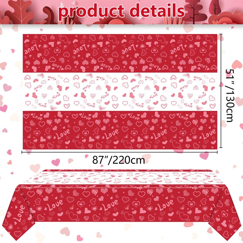 - 【Large Size for Decor】One order with 2 pieces of love table cloths, measuring approx. 51x87inch/130x220cm, it’s long and large enough for you to decorate your table, to meet the needs of Valentine's Day party table decorations and replacement.