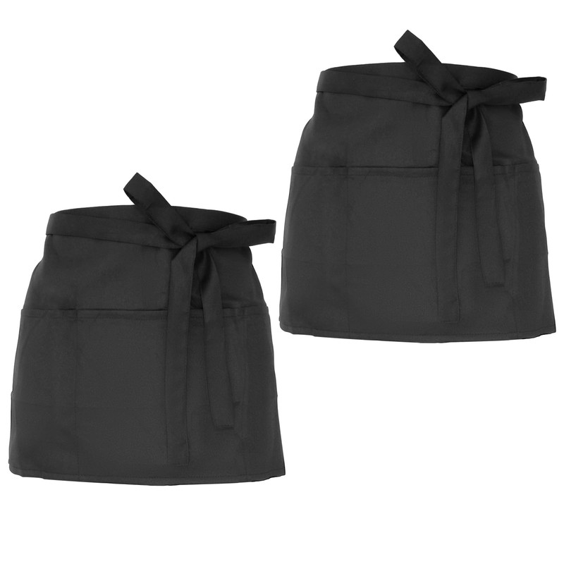 - Excellent Made: The black servers apron is length 60 cm, width 30 cm, has reinforced sewing at the waistband and pockets, hard to break and durability. Short apron have classic and stylish design, simple and generous