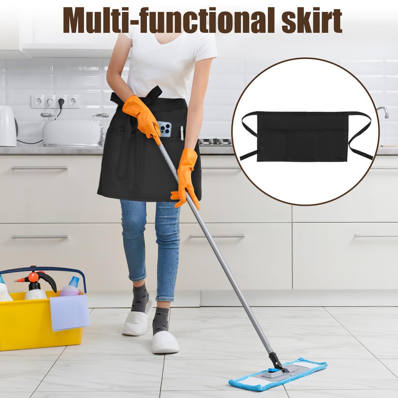 - Durable Material: Black apron with pockets are made from polyester, which is both strong and durable. Compared to other materials, the polyester apron is lightweight, making it more comfortable to wear for long periods