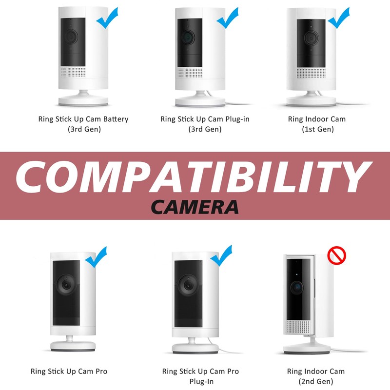 - Universal Camera Mounting Bracket: Compatible with Arlo HD/2/3/4, Eufy Cam, Plug-in Ring HD Security Camera & Stick Up Cam Battery, Wyze Cam Pan, and other cameras with a standard 1/4 threaded screw (Camera not included)