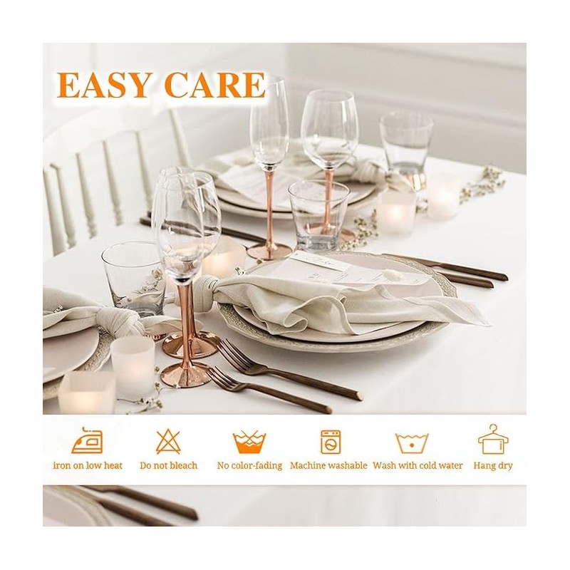 Premium Tablecloth Fabrics:Our tablecloth is made of soft premium polyester fabric that resists wrinkling for an always crisp, polished look. These materials are as skin-friendly as they are environmentally friendly. Perfect to protect and decorate your tables.