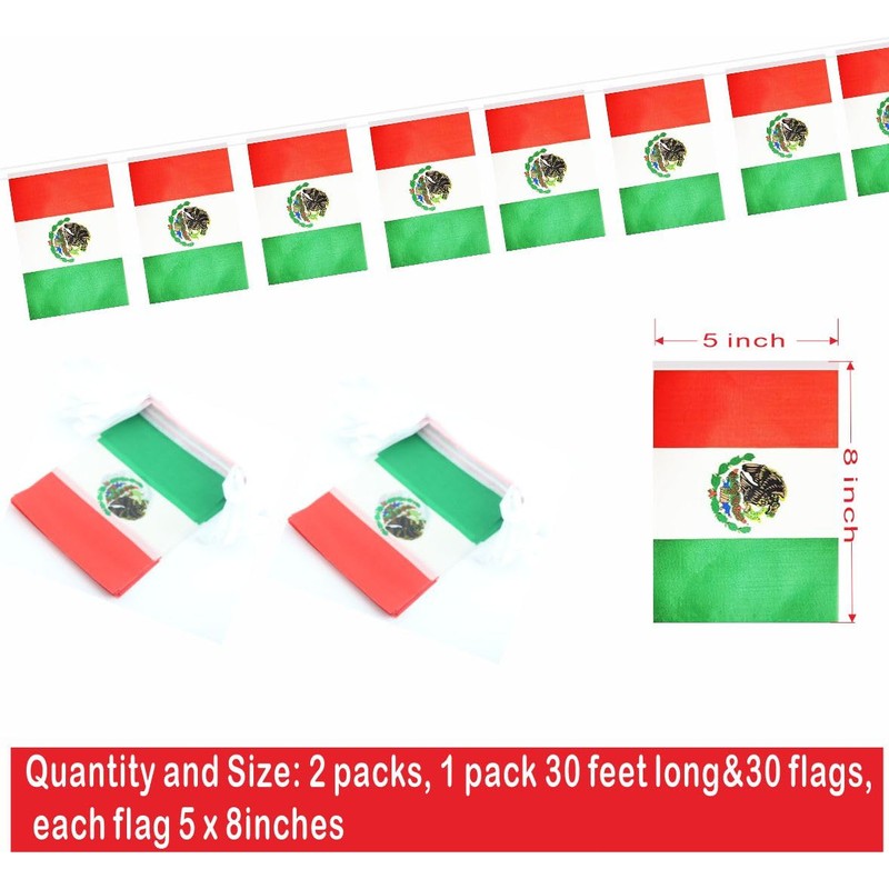 2 Packs 60feet Mexico Flag Banner String Mexican Flags Small Mini Bunting Banner for Hanging Decorations-60flags (Mexico)